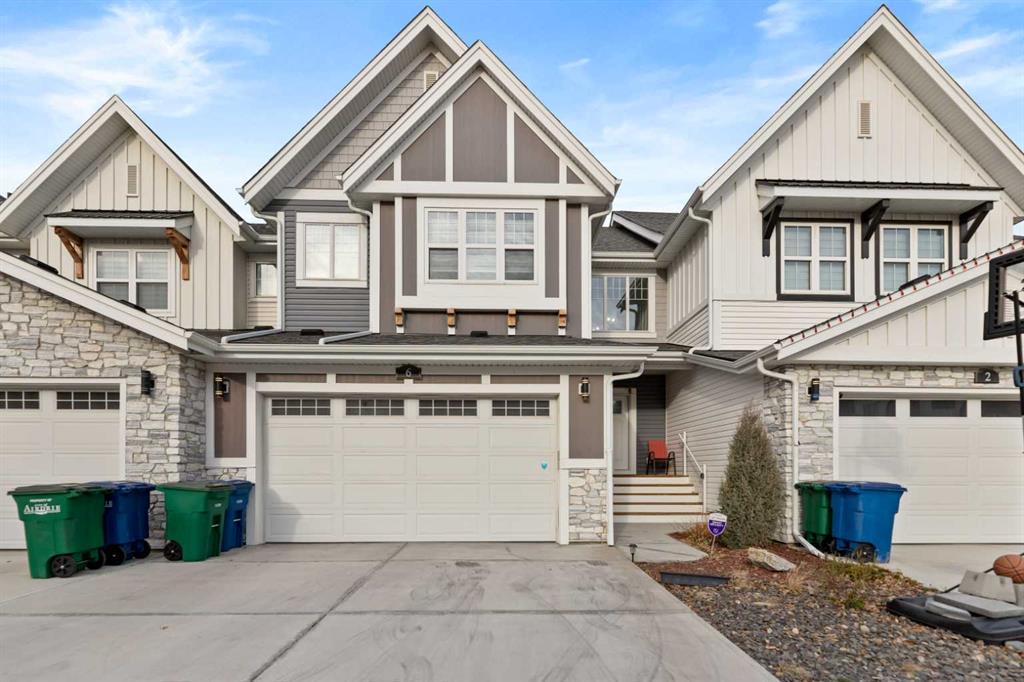 Welcome to this beautifully upgraded 1760 SQFT , 2-storey townhome with NO CONDO FEES and a DOUBLE ATTACHED GARAGE, Stylish and functional living space in one of Airdrie’s most desirable communities. Located just steps from Coopers Promenade, schools, parks, and everyday amenities, with a quick exit out of the city, this home combines comfort, convenience, and exceptional value. The curb appeal stands out , and a full driveway adds even more parking space. Step into a tiled foyer with closet storage for a clean and organized entry. The main level features a bright, open-concept layout designed for both relaxed living and effortless entertaining. Large windows fill the space with natural light, while wide plank flooring and modern finishes elevate the look and feel. The kitchen is a showstopper—finished with white quartz countertops, full-height cabinetry, a stylish backsplash, and stainless steel appliances including a gas stove and smart fridge. The large island with bar seating is ideal for quick meals or hosting friends, all under elegant pendant and recessed lighting. The dining area comfortably fits a table for six and leads into a cozy living room with a gas fireplace and a TV-ready wall above. A door from the living space opens to the private backyard with a patio—perfect for summer evenings and weekend barbecues. A walk-through pantry connects the kitchen to a functional mudroom with garage access, making everyday tasks like unloading groceries simple. A 2-piece bathroom completes the main floor. Upstairs, you will find three spacious bedrooms, two full bathrooms, a bonus family room, and a convenient laundry room with built-in cabinetry. The primary suite offers a large walk-in closet and a beautifully finished 5-piece ensuite with dual vanities, a soaking tub, and a walk-in shower. The two additional bedrooms are generously sized, with one featuring its own walk-in closet. The main 4-piece bath includes a tub/shower combo and modern finishes. The upper family room provides a flexible second living area, perfect for movie nights, a playroom, or a home office. The un-finished basement with rough-in plumbing already in place. Pride of ownership is evident throughout, as the home has been meticulously maintained by its original owner. With standout upgrades, a family-friendly layout, and a sought-after location, this townhome is ready to welcome its next chapter.